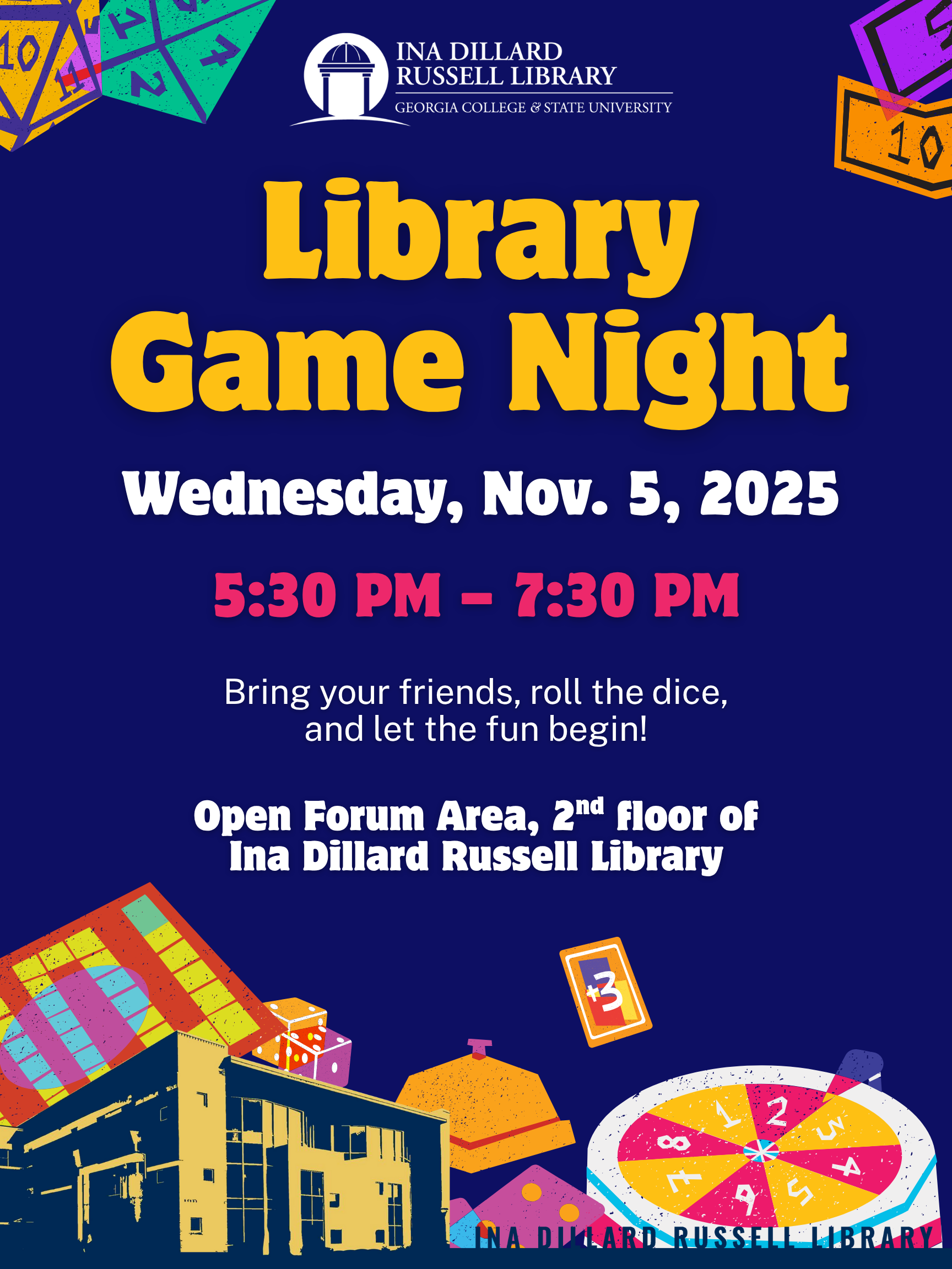 Russell Library will provide games to meet a variety of interests, from playing cards and puzzles to a wide selection of board games, or just bring your own and play with friends! Find us on the second floor near the Montgomery Bay windows.