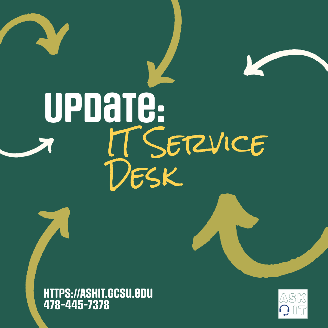 Words matter, and that extends to how we serve you. With the upcoming move of the IT Help Desk from the Library to Chappell Hall, we’re taking the opportunity to rebrand it as the IT Service Desk to emphasize a more proactive (rather than reactive) delivery of services. We’ve partnered with our friends in University Communications in updating references on https://www.gcsu.edu and https://my.gcsu.edu to reflect this name change. Use of https://AskIT.gcsu.edu and AskIT@gcsu.edu will remain the same. Please take this time to review and update any communications within your departments that may reference the IT Help Desk to reflect this change to IT Service Desk. We will share more details regarding the move to Chappell Hall as the timeline is finalized.