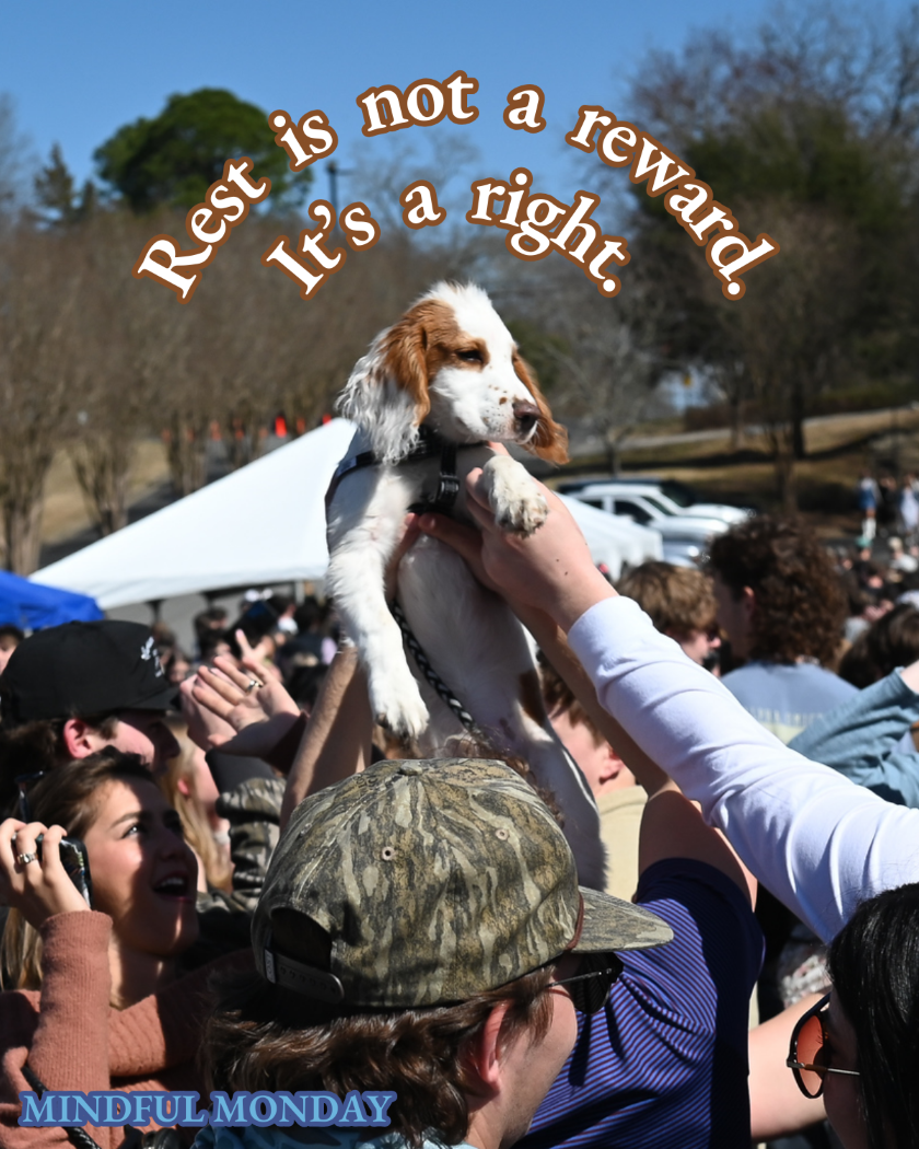 The Mindful Monday for Nov. 24, as we enter the holiday season, is a reminder to prioritize rest. When we have many obligations and life feels busy, we often feel guilt or shame for resting. We might confuse rest for "laziness," but rest is sometimes more productive than continuing to spin our wheels at a breakneck pace. When we try to do too much, we risk burning out our bodies and minds.