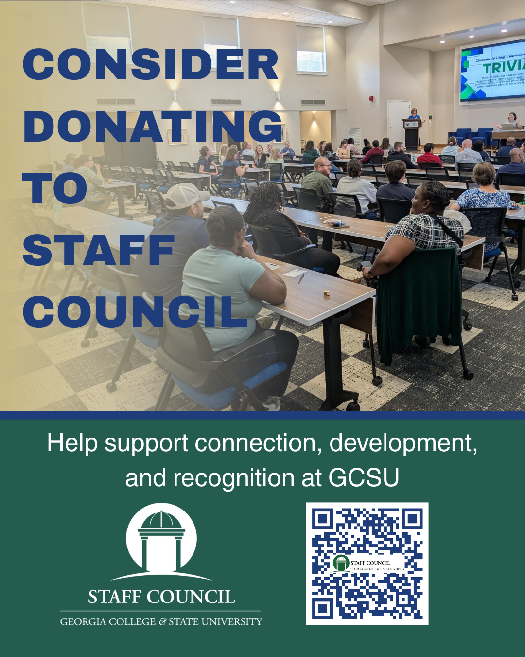 Scan the QR code to make a donation and support staff connection, development and recognition at Georgia College & State University.
