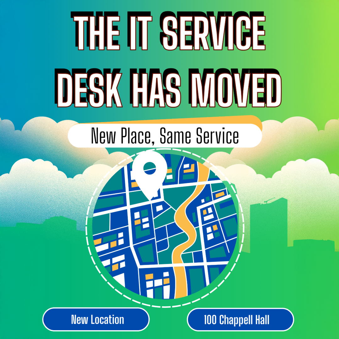 Be sure to visit the IT Service Desk in our new location, 100 Chappell Hall. We have signs posted in the library and throughout the first floor of Chappell Hall directing you to us. If you enter from North Clarke Street, we are the first door on your left. If you enter from the library or Russell Auditorium sides, just follow the hallway around to the lobby where 100 Chappell Hall is located.