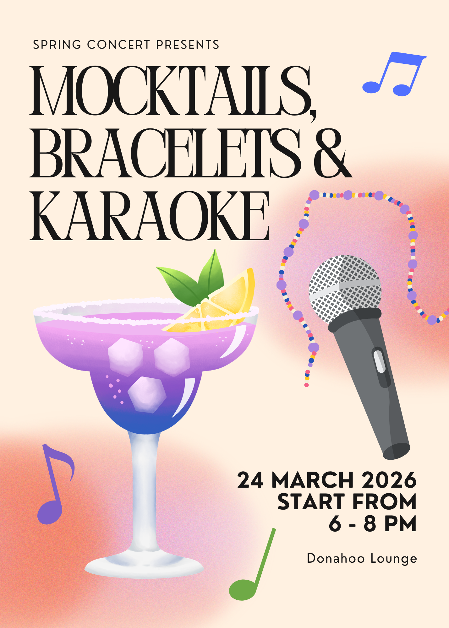 Spring Concert presents: Karaoke, Mocktails and Bracelet Making