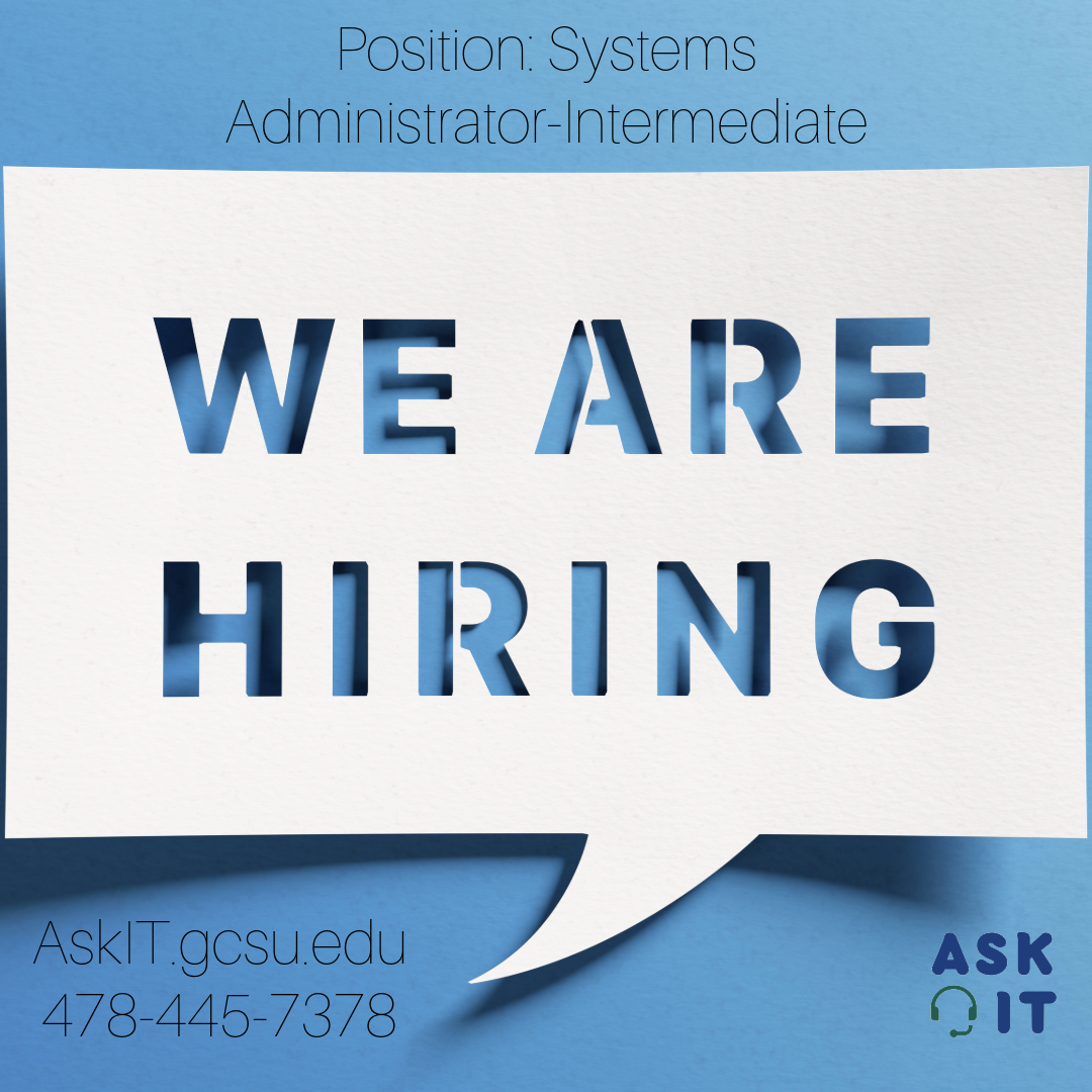 Join our team! Information Technology is hiring for the position of Systems Administrator-Intermediate.