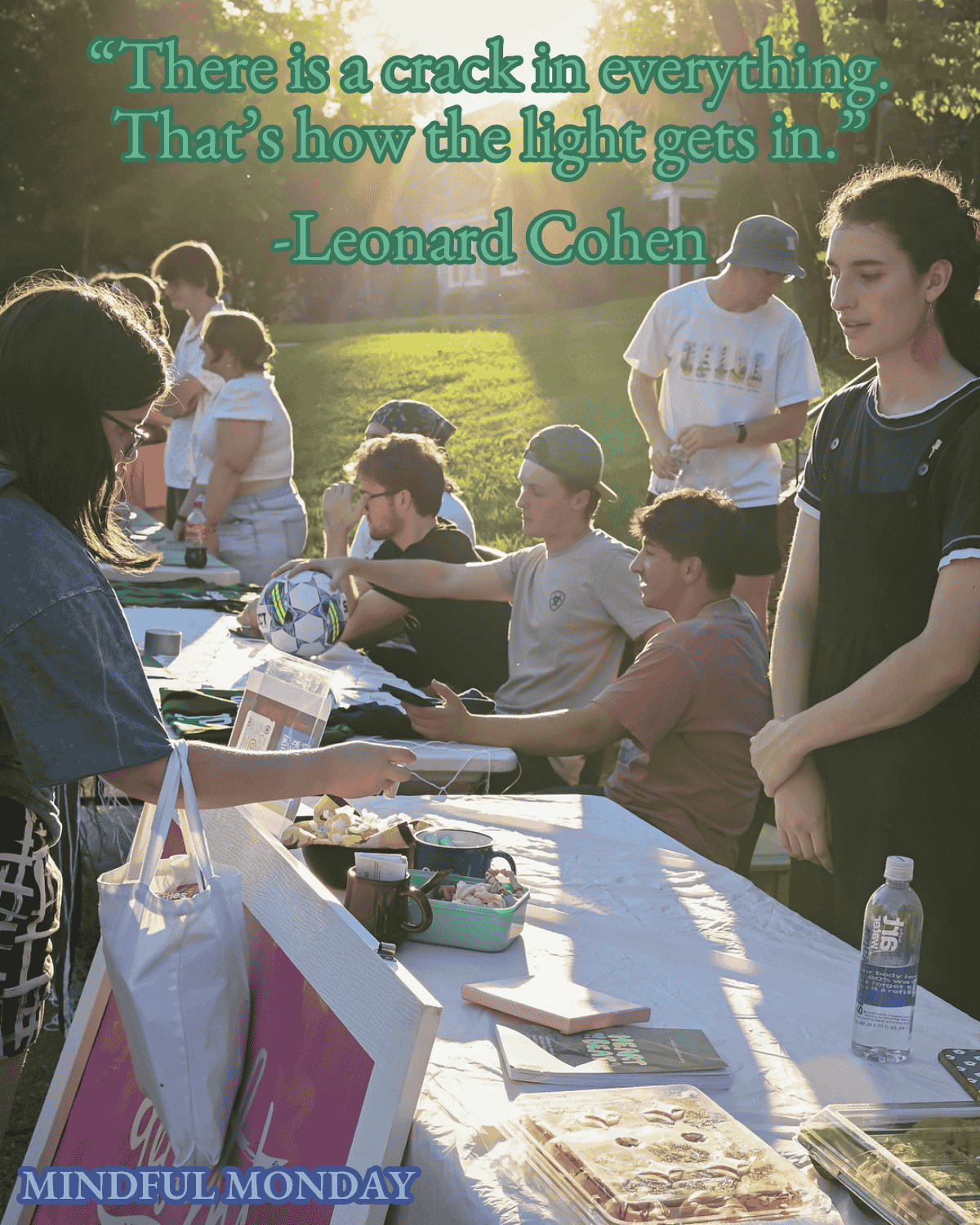 The Mindful Monday for March 23 is a lyric from Leonard Cohen's 1992 song "Anthem": "There is a crack in everything. That's how the light gets in." Cohen's lyric reminds us that what might seem like imperfections or flaws in ourselves and others are not weaknesses. They are openings for growth and understanding of each other's humanity. When we chase perfection, we sometimes close off or repress parts of ourselves that make us unique. Being authentic and allowing others to experience our true selves means embracing the messiness of a full life. Authenticity might look like admitting when we don't know something, owning a mistake or embracing the oddities and eccentricities of our personalities. That is when the light shines through.