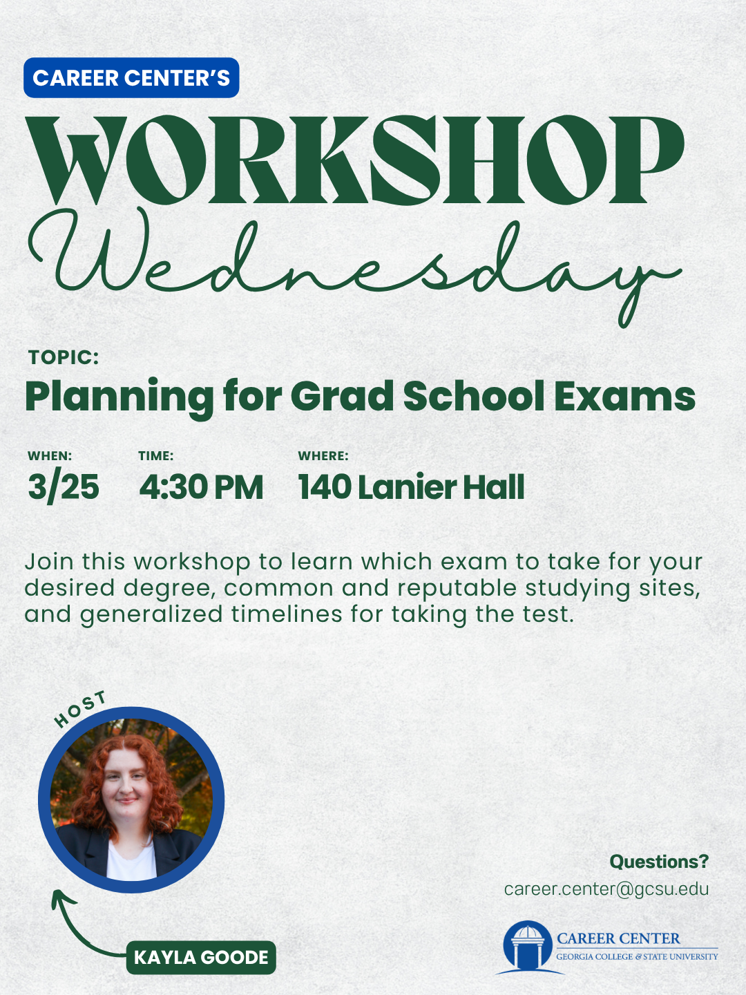 Join the Career Center for our Planning for Grad School Exams Workshop!