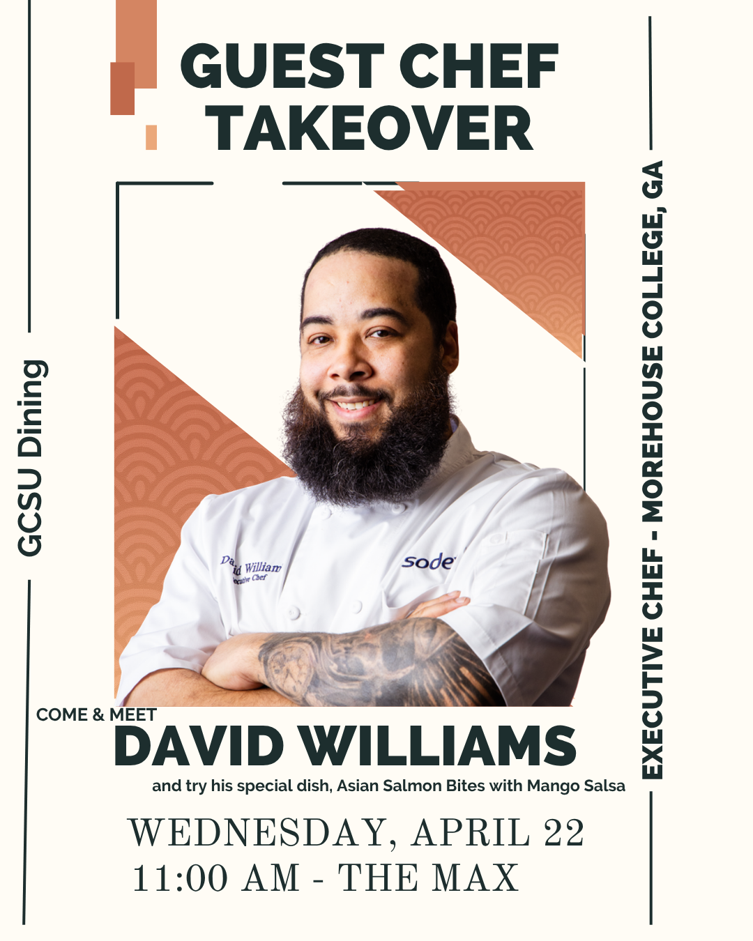 Meet Chef David Williams, executive chef from Morehouse College, at our exclusive Guest Chef Takeover at The Max this Wednesday during lunch!