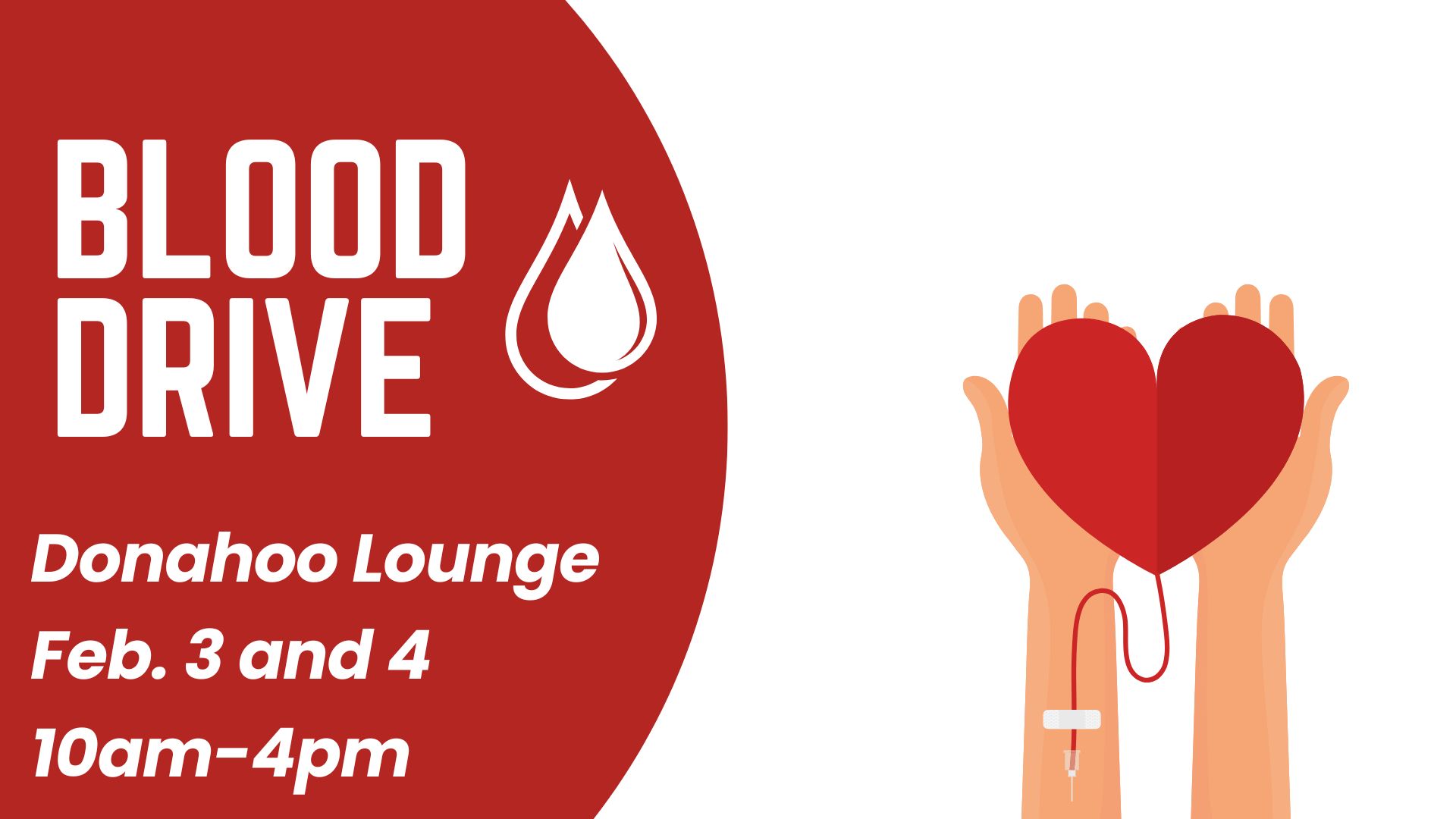The American Red Cross is seeking donors and volunteers for the blood drive Feb. 3 and 4. The blood drive will be held in the Maxwell Student Union in Donahoo Lounge on first floor.Presenting donors will receive: a $20 e-gift card (valid email address required) and a Sonic coupon!To schedule your appointment: Click here to schedule your visit.To volunteer to assist with the blood drive: Visit the GCSU GivePulse website to sign up to help with tabling, canteen or check-in. Click to...