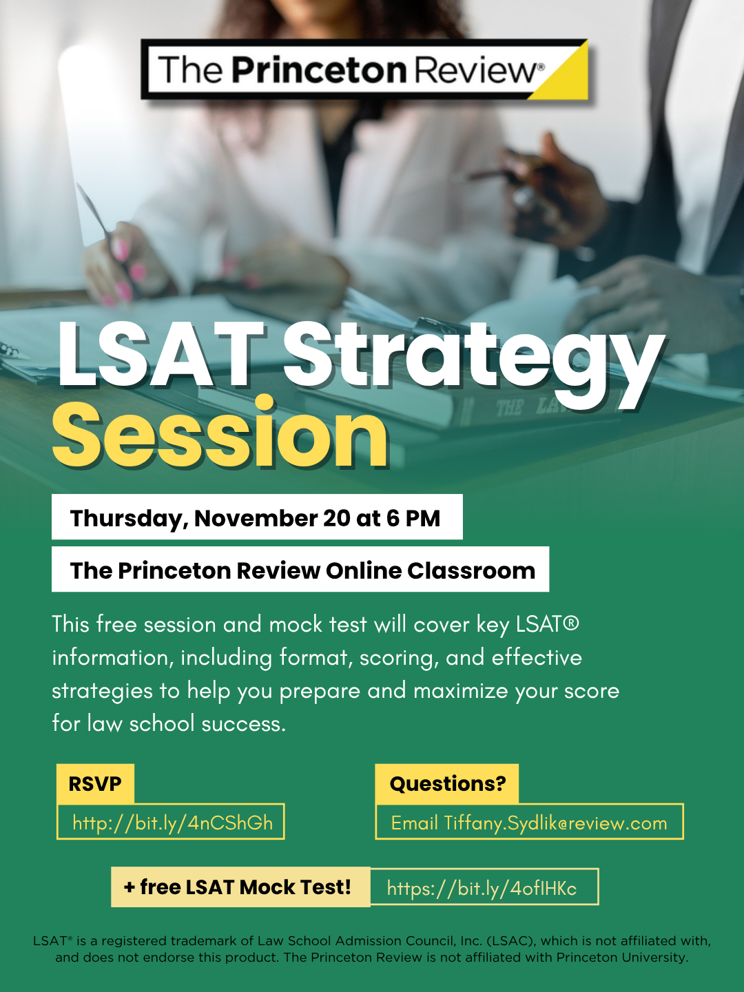 Are you preparing for law school? Join The Princeton Review for a free LSAT Strategy Session to learn key information about the LSAT®, including test format, scoring and effective strategies to help you prepare and maximize your score.Thursday, Nov. 20 | 6 p.m. | virtualPre-registration requiredA free LSAT mock test is also available to help put their strategies into practice.Register for the LSAT Strategy Session: http://bit.ly/4nCShGh.Register for the Free LSAT Mock Test: https://bit.ly/4ofIHK...