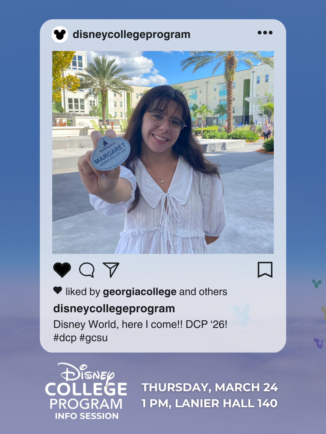 Fall 2026 Disney College Program applications are open!Are you ready to make your Disney dreams come true? Join us for our final info. session of the semester where we’ll dive into the Disney College Program, learn about the application process, discover the magic behind the program and enjoy Disney trivia and prizes. When: Tuesday, March 24, at 1 p.m.Where: Lanier Hall, Room 140Interested in learning more before you stop by?Click here for more information about the Disney College...