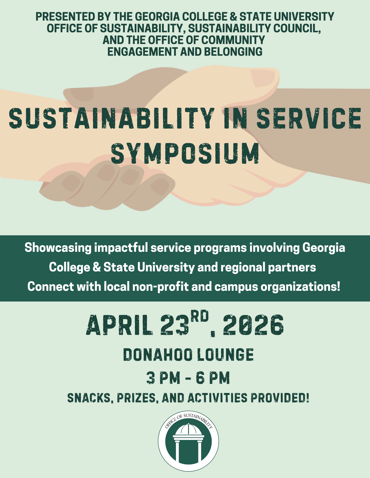 The Office of Sustainability, the Sustainability Council and the Office of Community Engagement and Belonging invite all students, faculty and staff to attend the annual Sustainability in Service Symposium on April 23 from 3 to 6 p.m. in Donahoo Lounge.This engaging, campus-wide event brings together students, faculty and local partners to explore how sustainability and service intersect in meaningful, hands-on ways. Come, learn directly from local service organizations about volunteer...