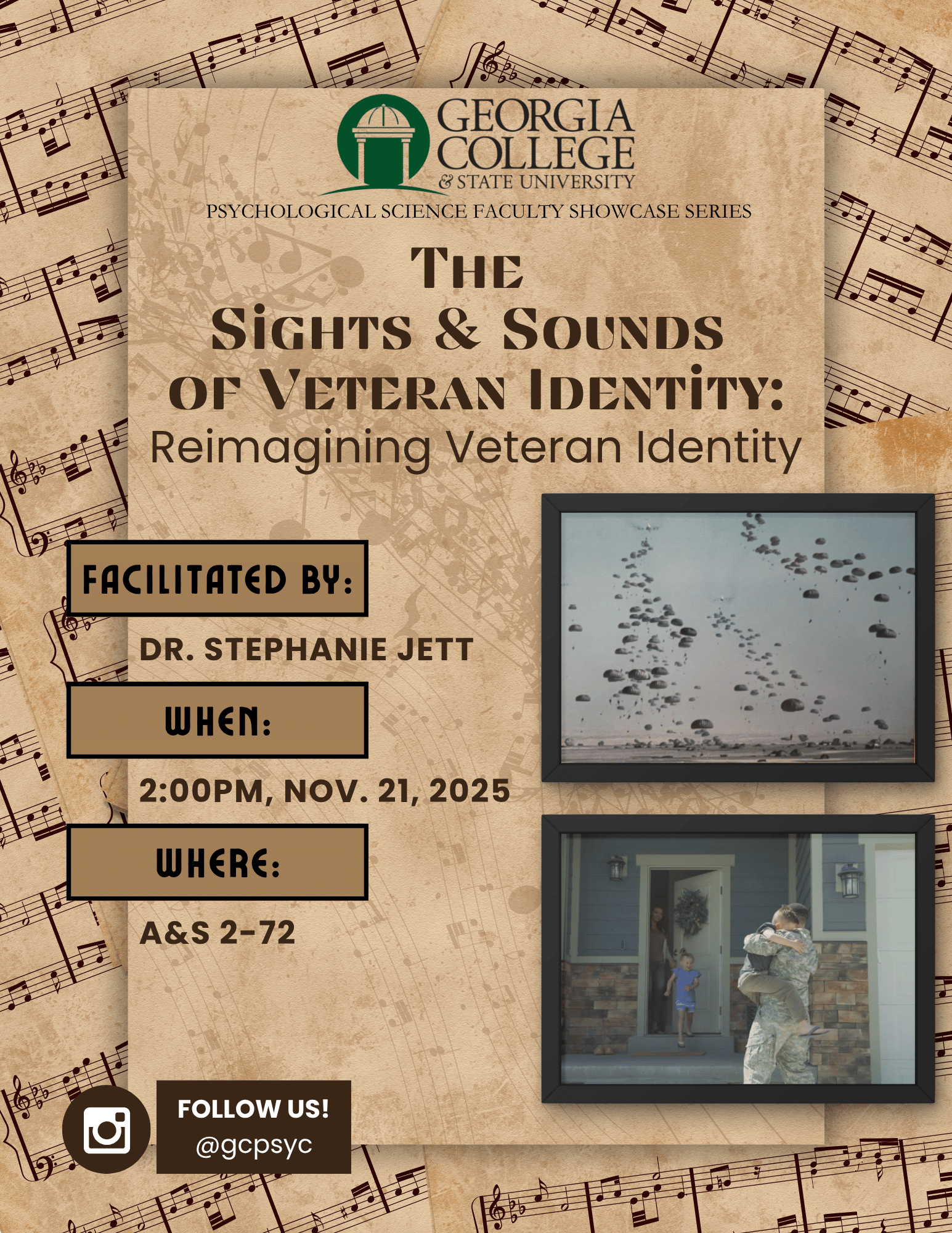The Department of Psychological Science presents its third faculty showcase with Dr. Stephanie Jett. The focus of this talk will be on veteran identity. What does it mean to be a veteran? Through interactive surveys, creative expression and real stories, this talk dives into how identity is shaped during and after service. Learn how stereotypes impact recognition, access to care and self-understanding — and how you can help shift the narrative.