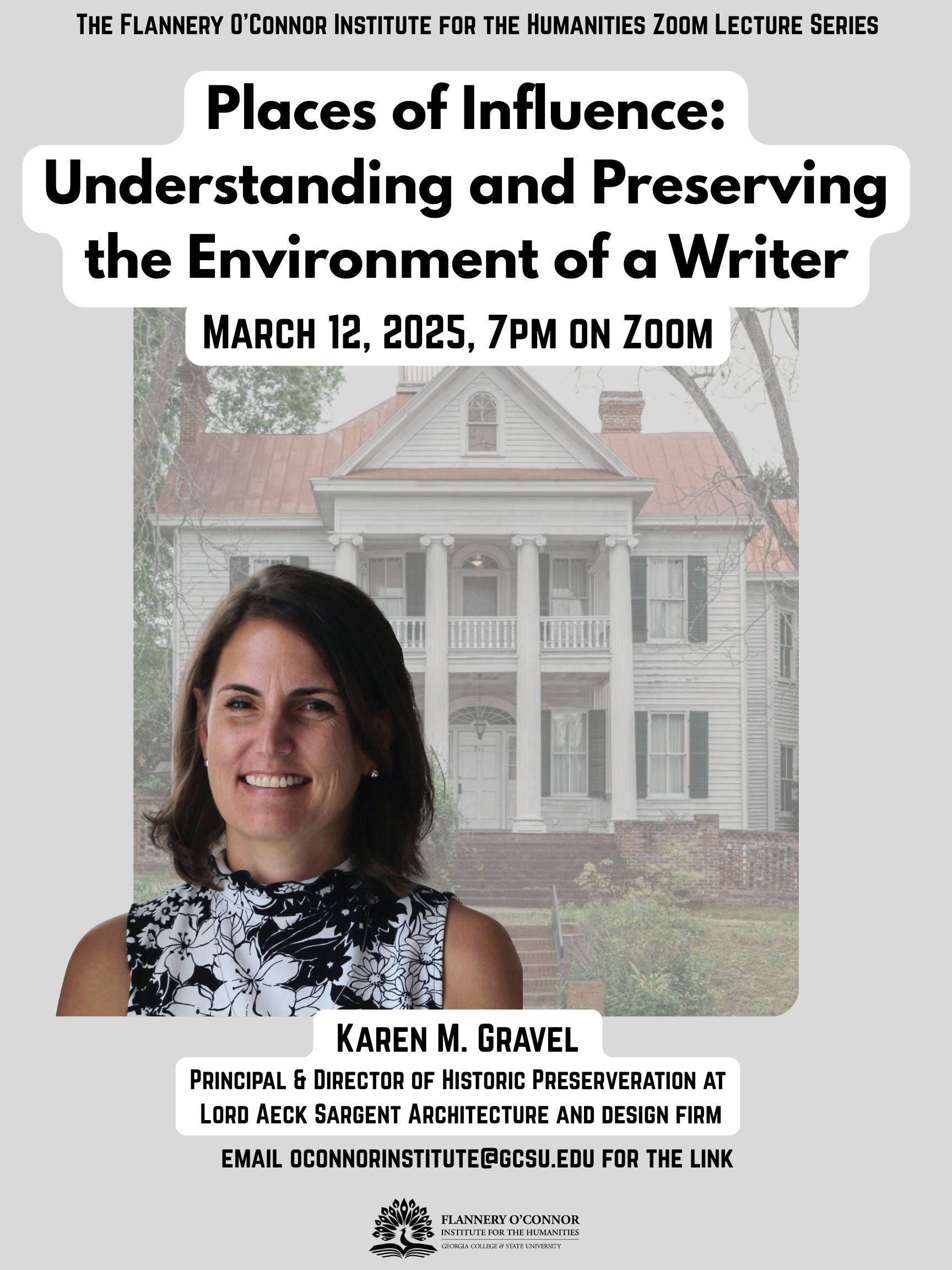 Karen M. Gravel is principal and director of Historic Preservation at Lord Aeck Sargent Architecture and Design Firm. She has worked on many historic restorations at Georgia College & State University's Andalusia Farm Property and Terrell Hall. She will present her assessment of the recently donated Cline-Florencourt mansion on Greene Street. Historically important for many reasons, this house was also Flannery O'Connor's home during her time in high school and college. Gravel will...