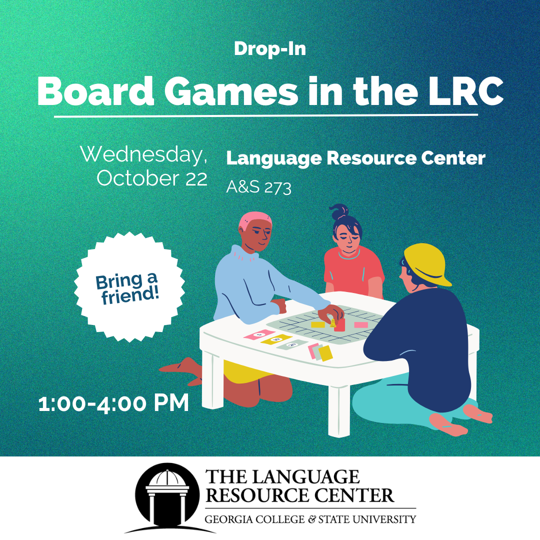 The Language Resource Center invites anyone looking for a fun way to practice their language skills to stop by for Drop-in Board Games in the LRC on Wednesday, Oct. 22, from 1 until 4 p.m. Board games and card games will be available to learners and speakers of French, German, Italian and Spanish. Bring a friend, if possible, to ensure you have a worthy opponent in your language of choice and to add a little fun to your Wednesday afternoon.