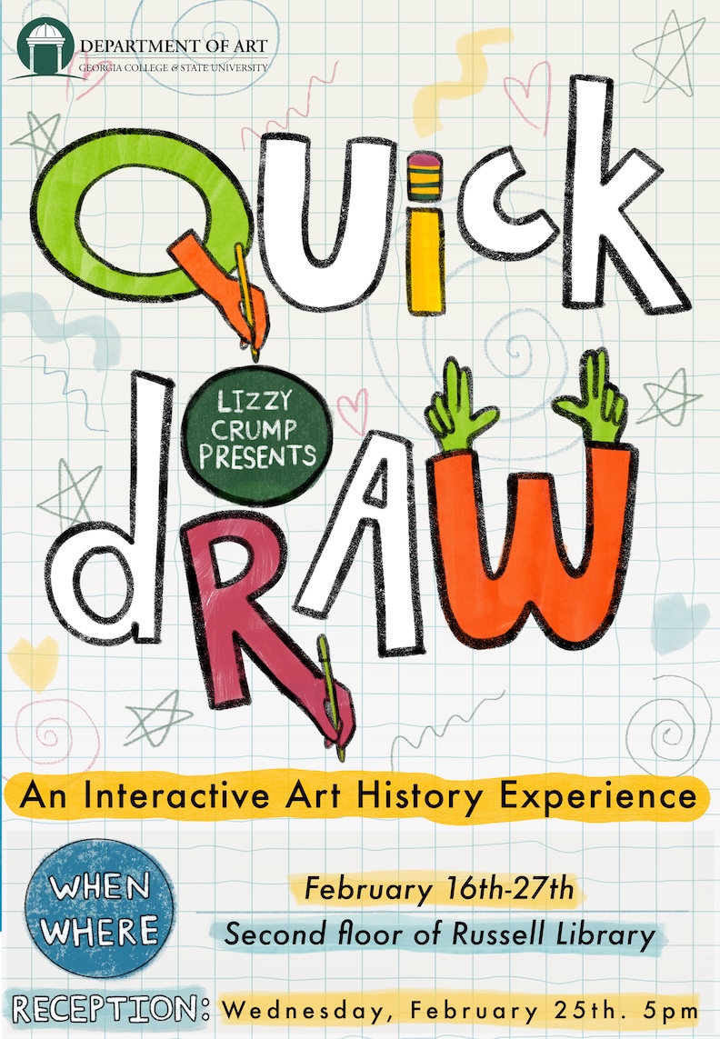 Museum Studies Capstone Project "Quick Draw" is an interactive experience by Lizzy Crump.Quick Draw will be held Feb. 25, from 5 to 6 p.m. on the second floor of Russell Library, near Special Collections.